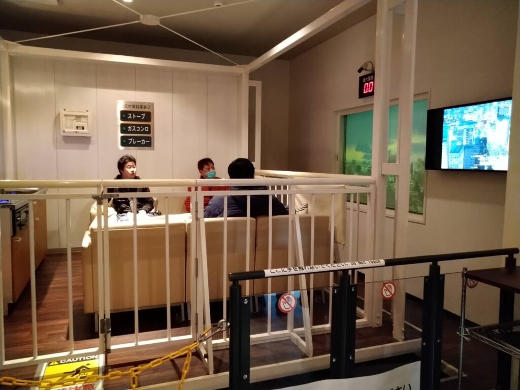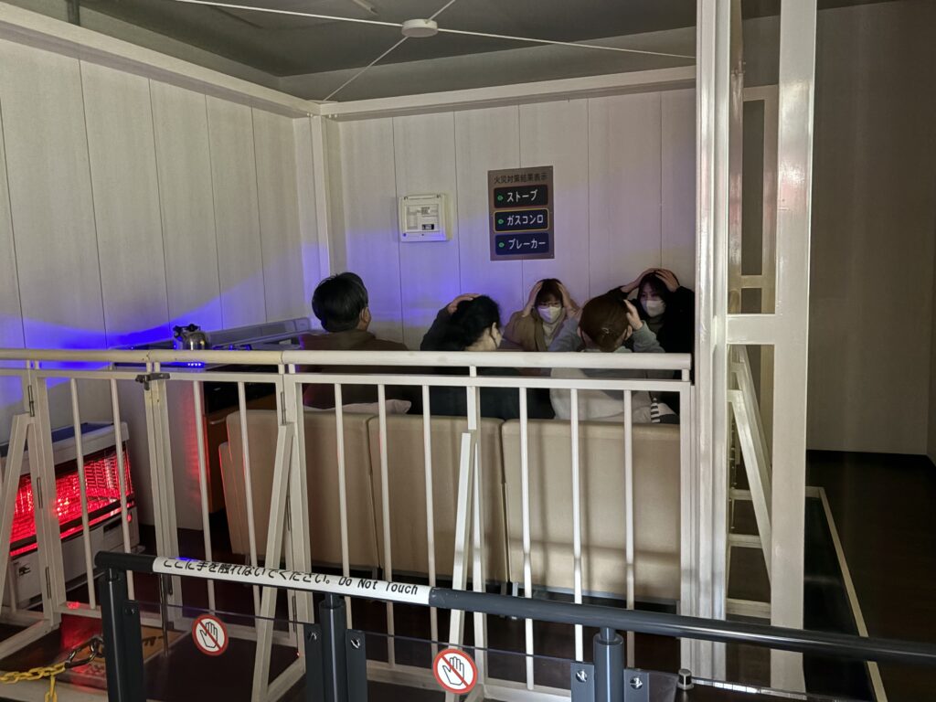 まずは地震の体験で、なんと阪神淡路大震災レベルの震度7でした!!