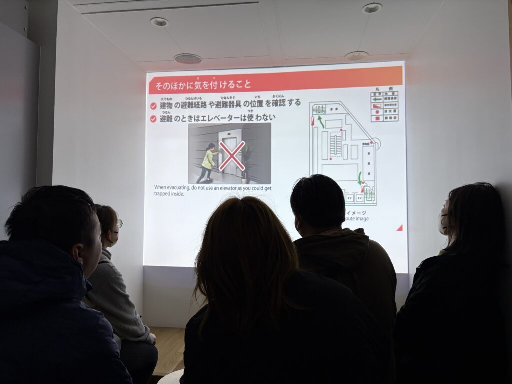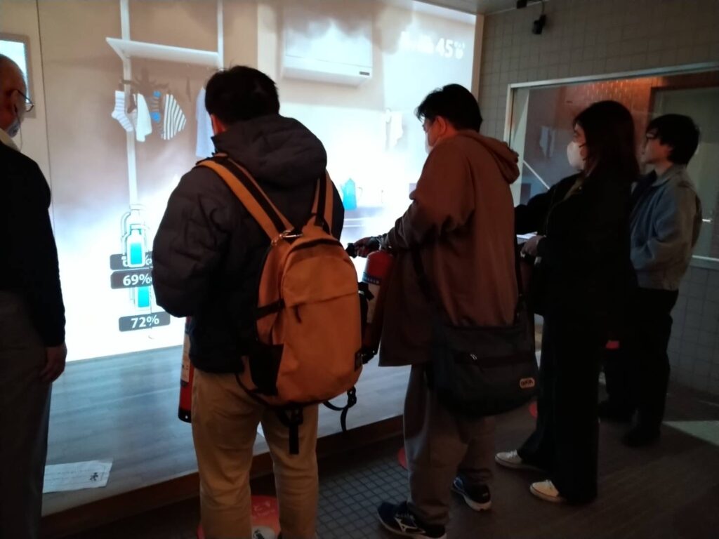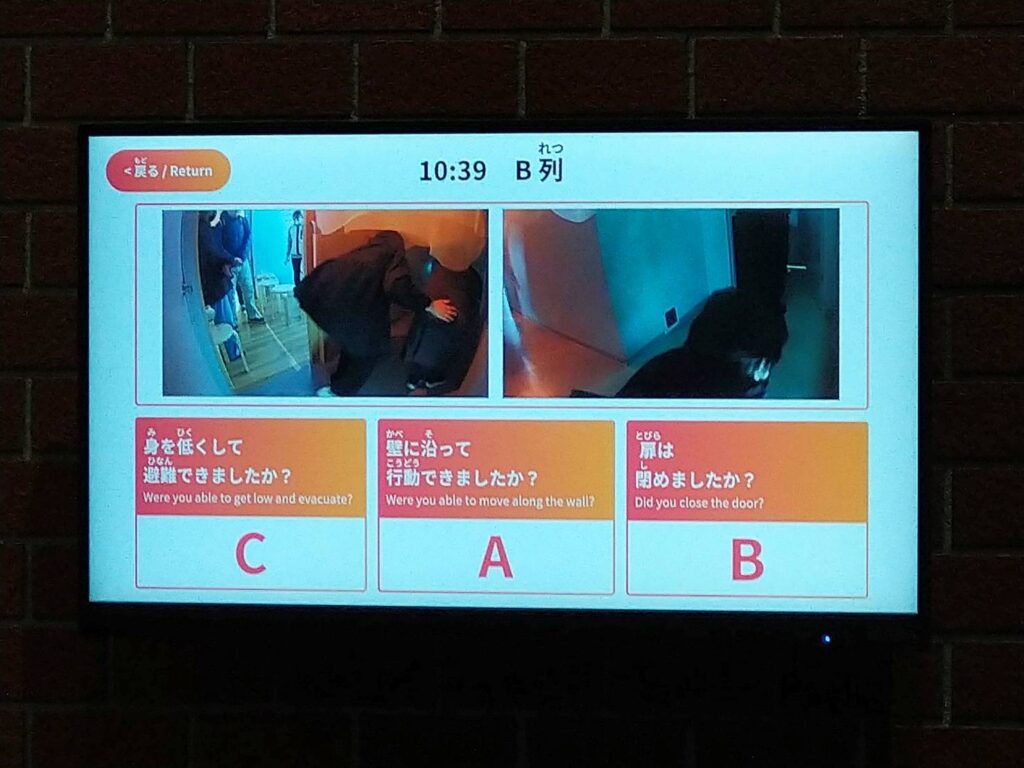 次は火事の煙から逃げる訓練で、事前に逃げ方の説明動画を観てから始まりました!