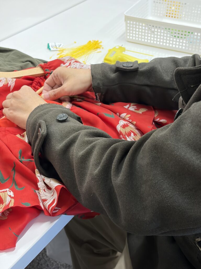 ハンガーにかけて所定の位置に値札をつけます。服によって異なる値付け方法がありますがマンツーマンでレクチャーするので安心してください!